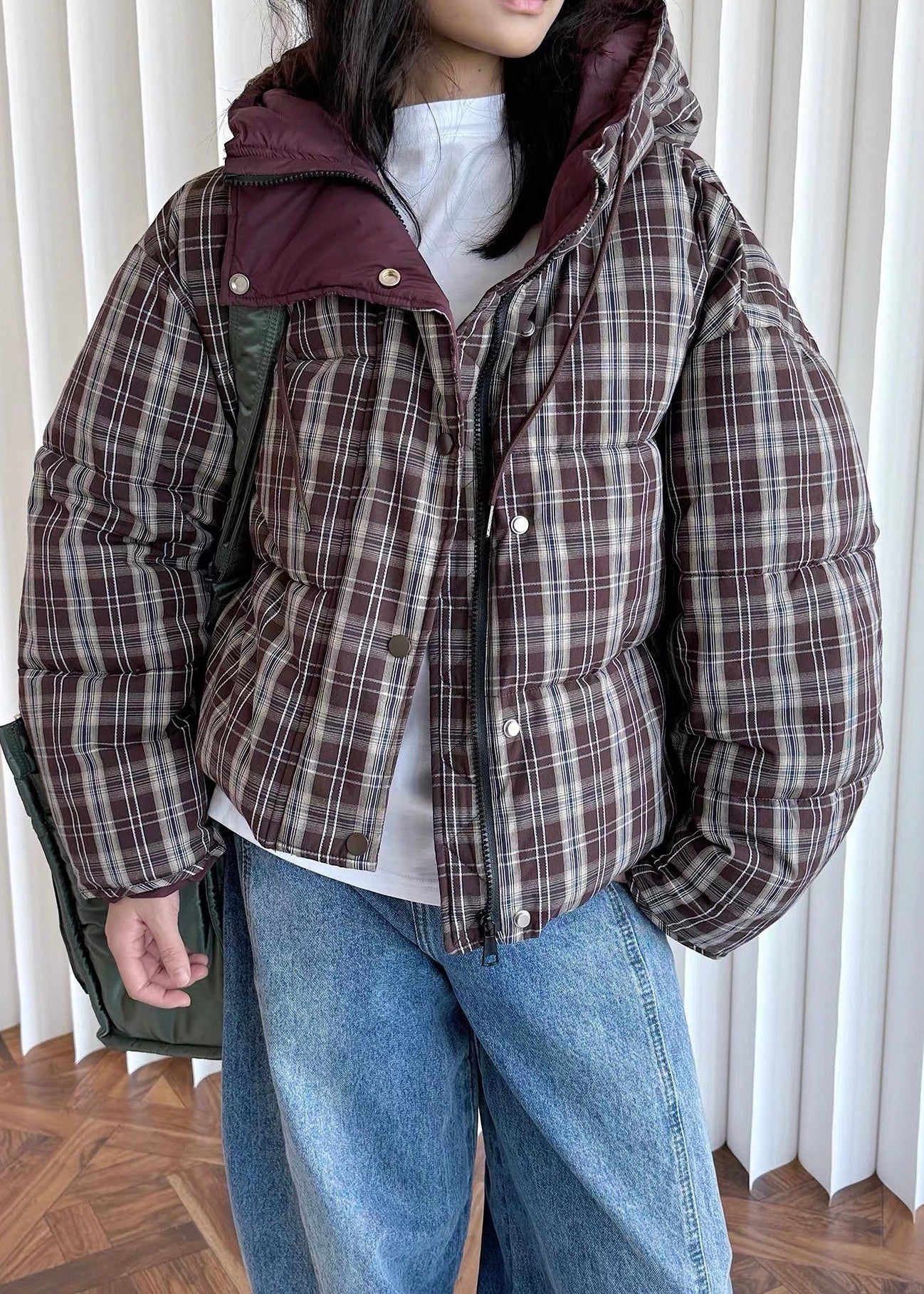 チェック柄ダウンジャケット E1444